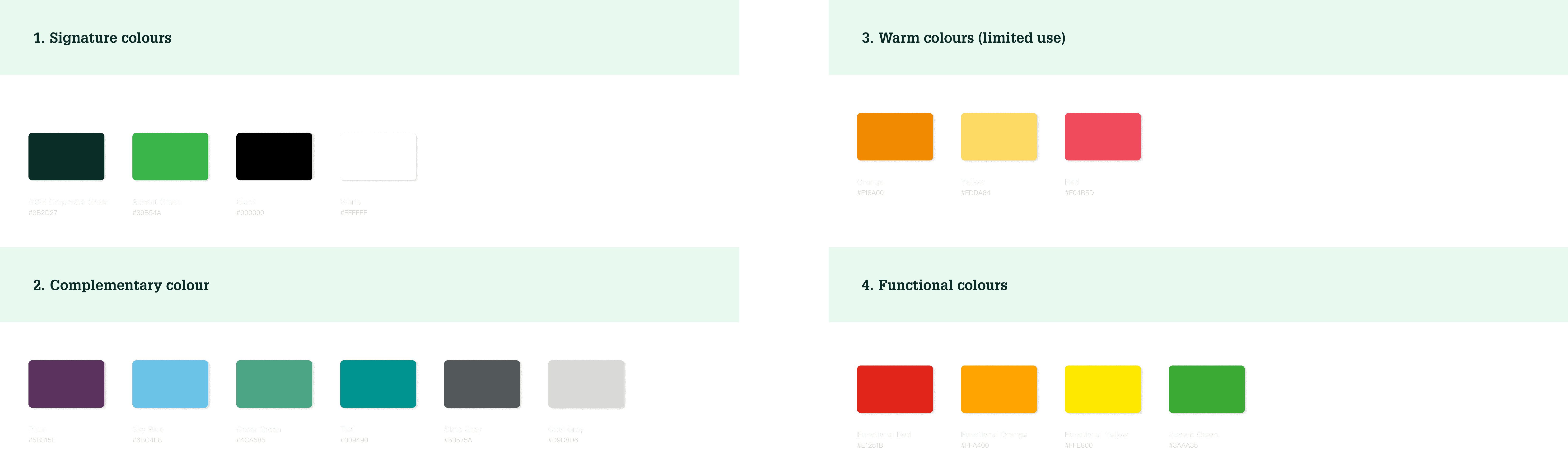 I chose and optimised colours by structuring the brand palette into Signature, Complementary, Warm, and Functional categories, then strategically applying the Signature (Corporate Green/White) and Functional (Red) colours in the UI to ensure brand consistency and guide user focus to key actions.