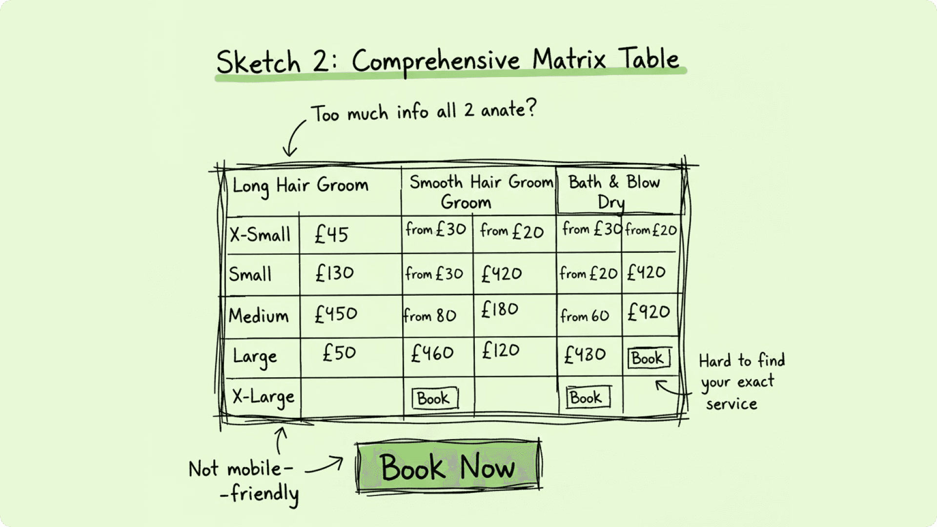Post-COVID, pet owners faced major issues booking grooming services. Online, pricing was confusing, store info was buried, and defining a pet’s size felt like guesswork.
