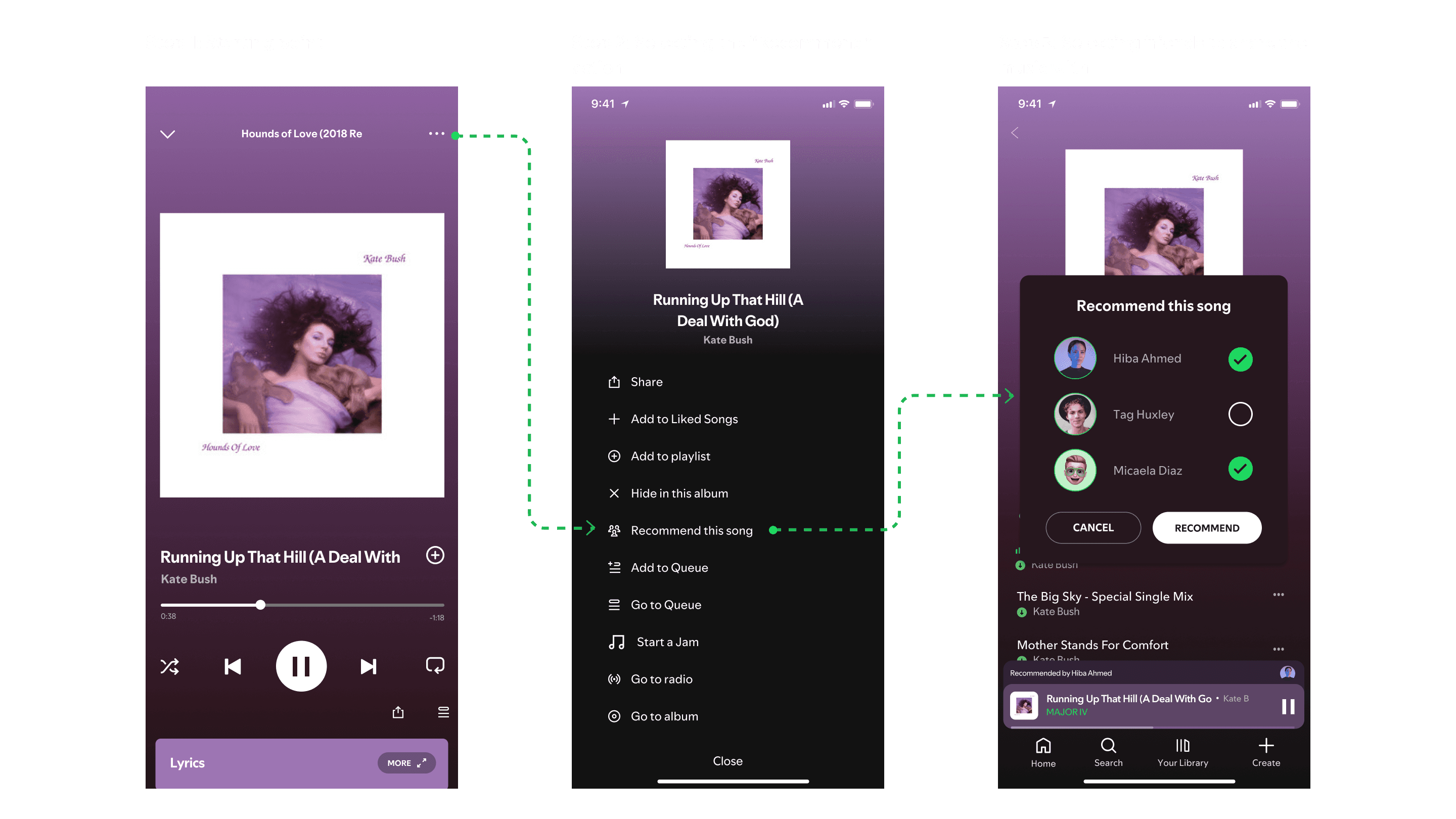 Here's the quick run-down of how a user would recommend a song to a friend: