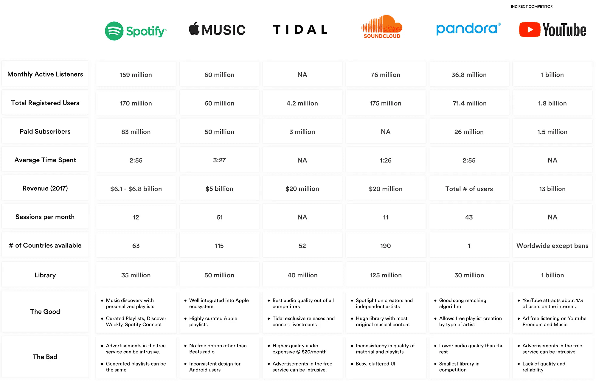 I also reviewed major streaming services (like Apple Music and Amazon Music) and their social/sharing features.