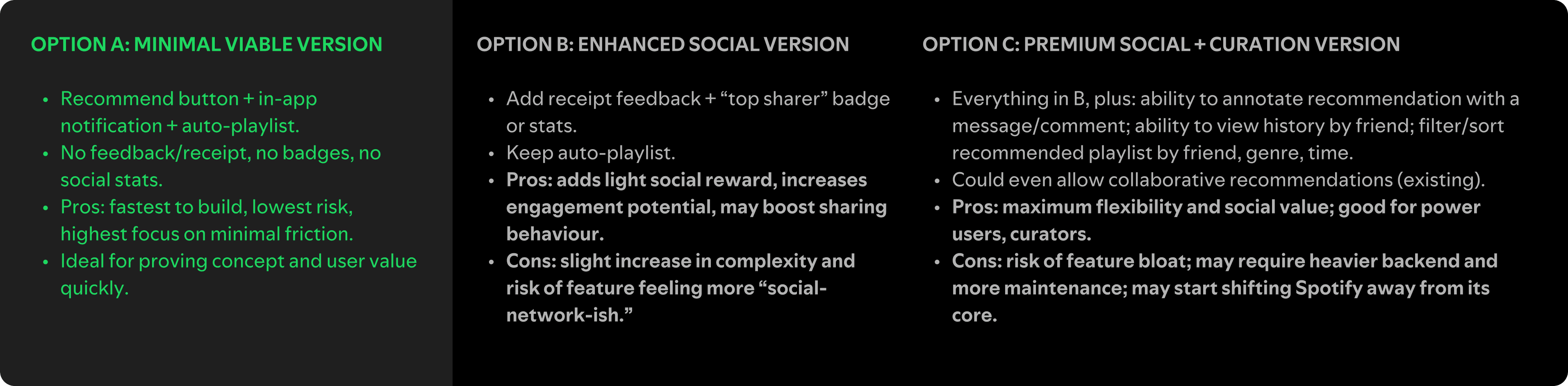 I explored lighter text-forward cards and richer thumbnail-based layouts to see which felt more native to Spotify. The thumbnail direction delivered the strongest foundation to evolve into my final option.