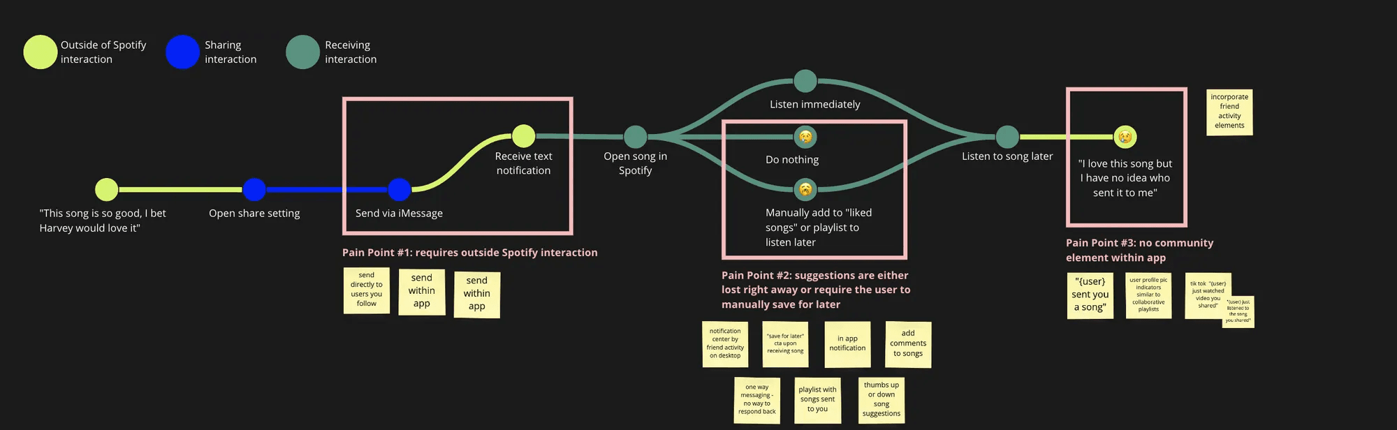 I mapped out typical user behaviours for sharing and receiving music. Two main actions emerged:
