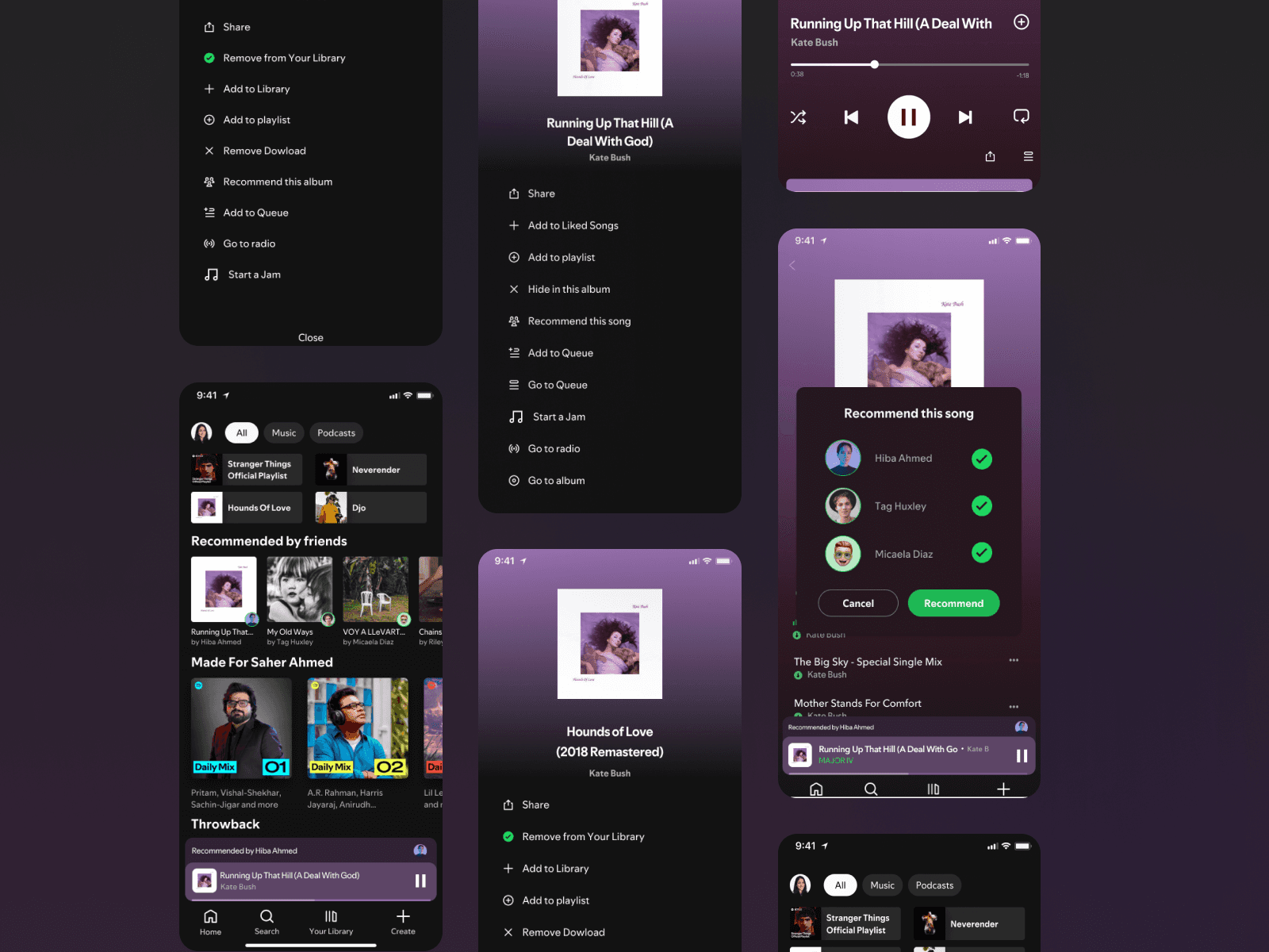 The design integrates a music recommendation feature directly into Spotify's existing flow to maximise utility while minimising UI disruption.