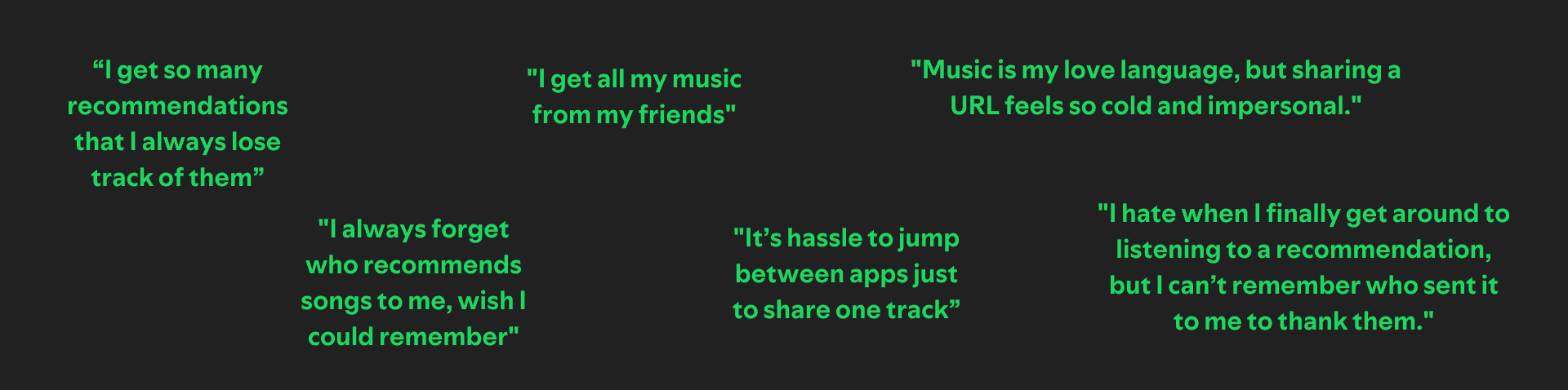 Receiving a song: The link lands in a chat; a friend may click, may save, but often it gets buried since there is no persistent record inside Spotify.